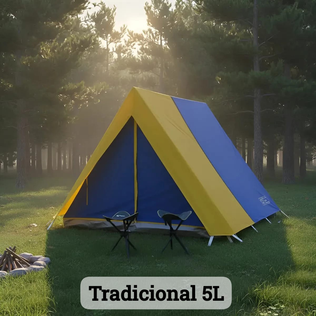 Barraca de Camping Modelo Canadense Natura 5 Lugares Gripa Tents Padrão Azul Royal & Amarela